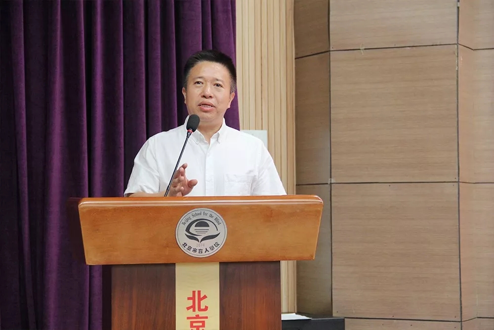 北京彭胜医院彭胜院长致辞彭胜院长说:“来到盲校,我的内心可以说高兴又激动,高兴的是,每次我见到的都是一张张天真、可爱、乐观的笑脸!激动的是,我作为一名民营医院的院长,能有幸和从事如此崇高的特殊教育事业的老师们共同庆祝伟大祖国生日,深感荣耀和惶恐!”为让盲校的孩子们更好地体验生活、融入社会,彭胜院长代表北京彭胜医院为盲校的孩子们送去一批人工智能语音机器人。